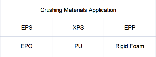 The two shafts/axis design for EPS crushing equipment is heavy duty,no worry of the materials of foam waste any more.It can easily work with EPO etc rigid foam materials.